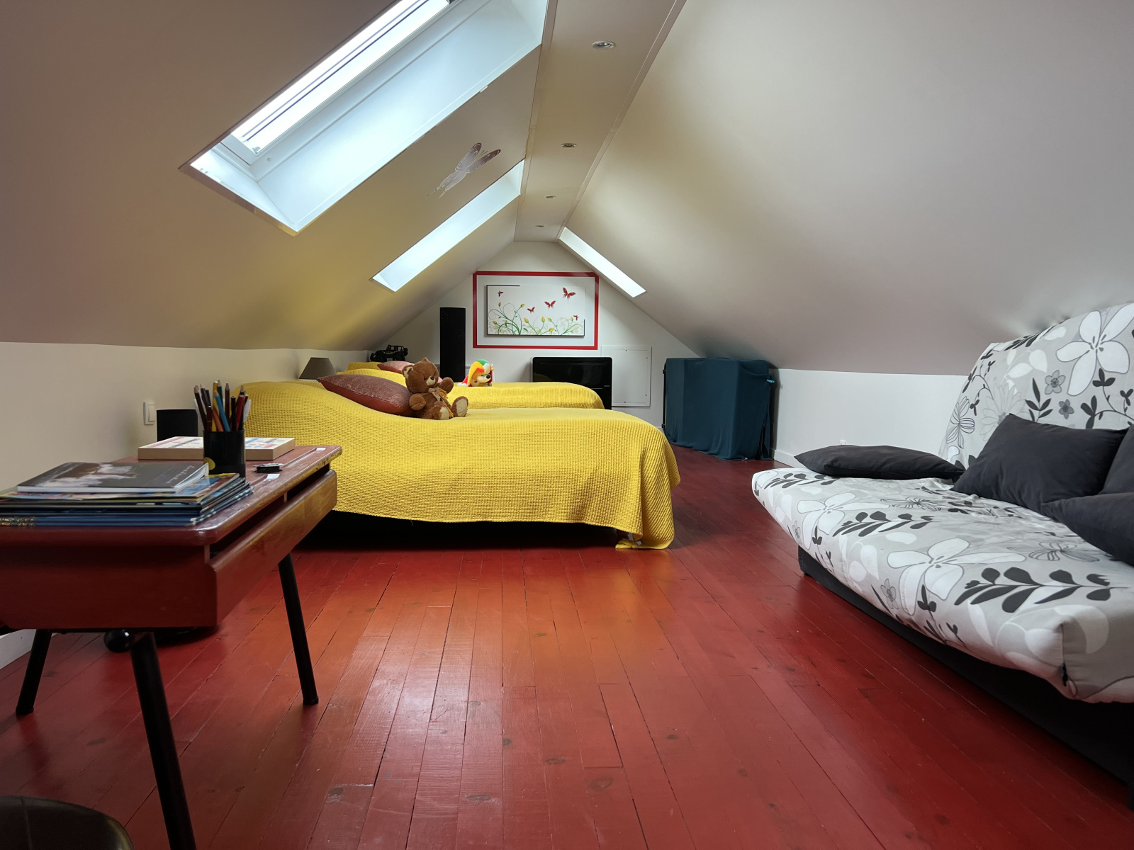 Au second : une chambre dortoir.