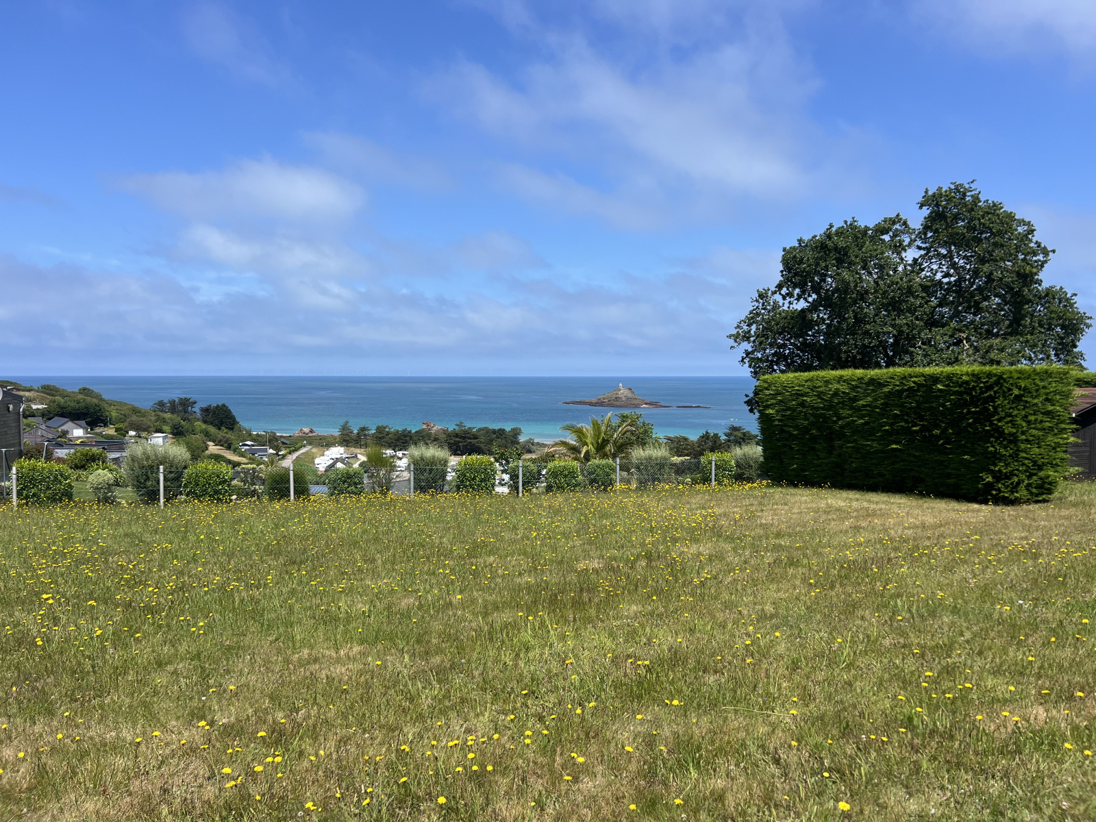 Erquy (22430)Erquy 22430. Les Landes d'En Bas, vue imprenable sur l'ilot Saint Michel pour ce terrain non constructible avec mobilhome et cabanon de jardin.
