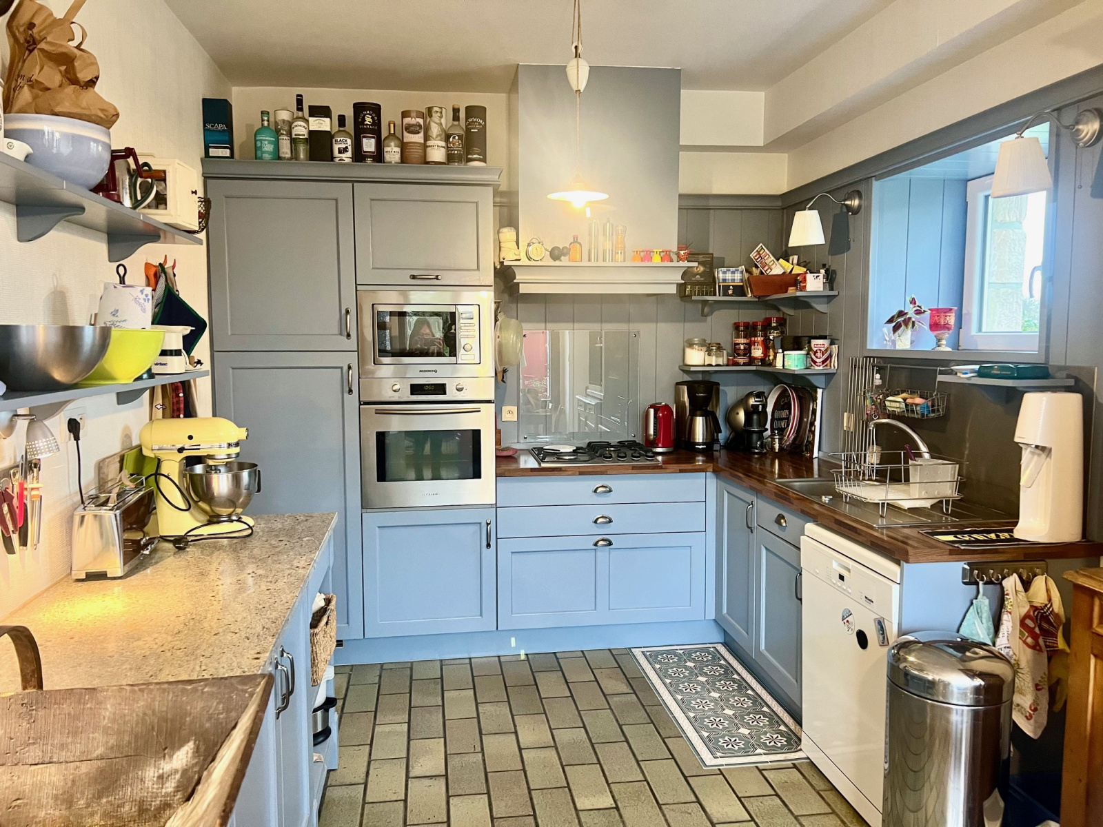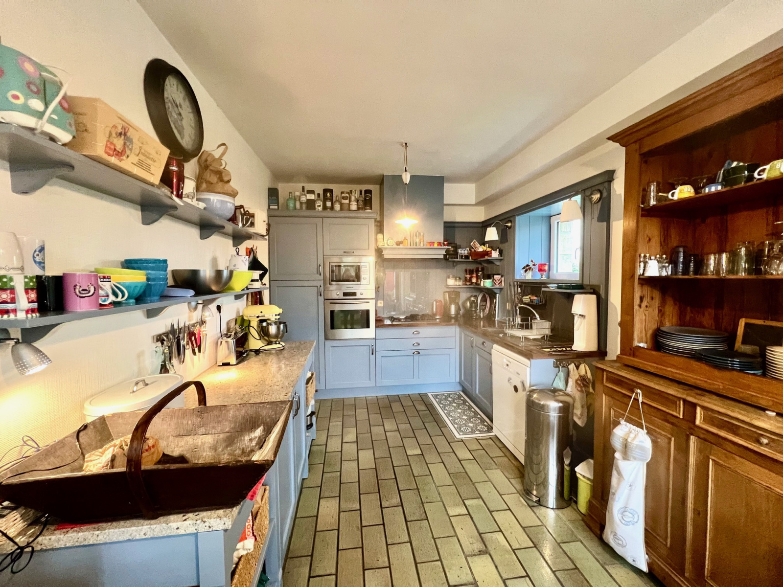 Cette longère de 200 m2 habitable environ comprend : une entrée, une pièce de vie lumineuse de 60 m2 environ avec une cheminée, une cuisine équipée et aménagée avec coin repas, un espace buanderie, un bureau, une douche, WC.