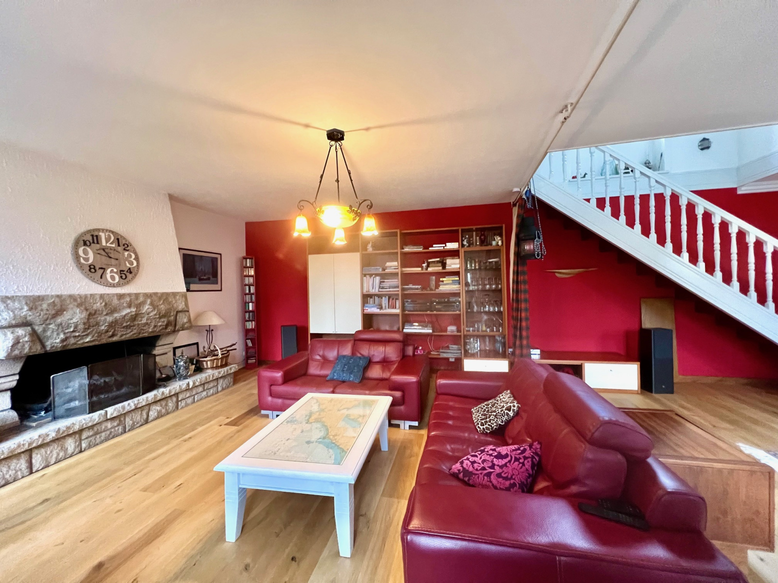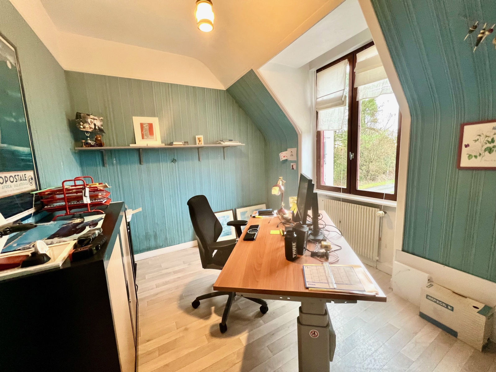 A l'étage : palier desservant quatre chambres, un bureau, une salle d'eau, WC séparé.